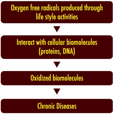 Oxidative stress induced by oxygen free radicals that are generated by normal metabolic activity as well as lifestyle factors such as smoking and unhealthy diet will eventually lead to the development of chronic diseases.